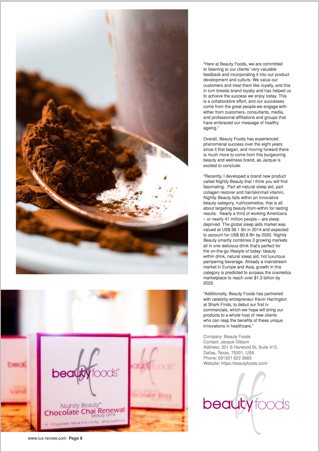 Recipient of UK's LUX Health, Beauty & Wellness award 2018 for Best Nutri-Cosmetic Provider - Southern USA