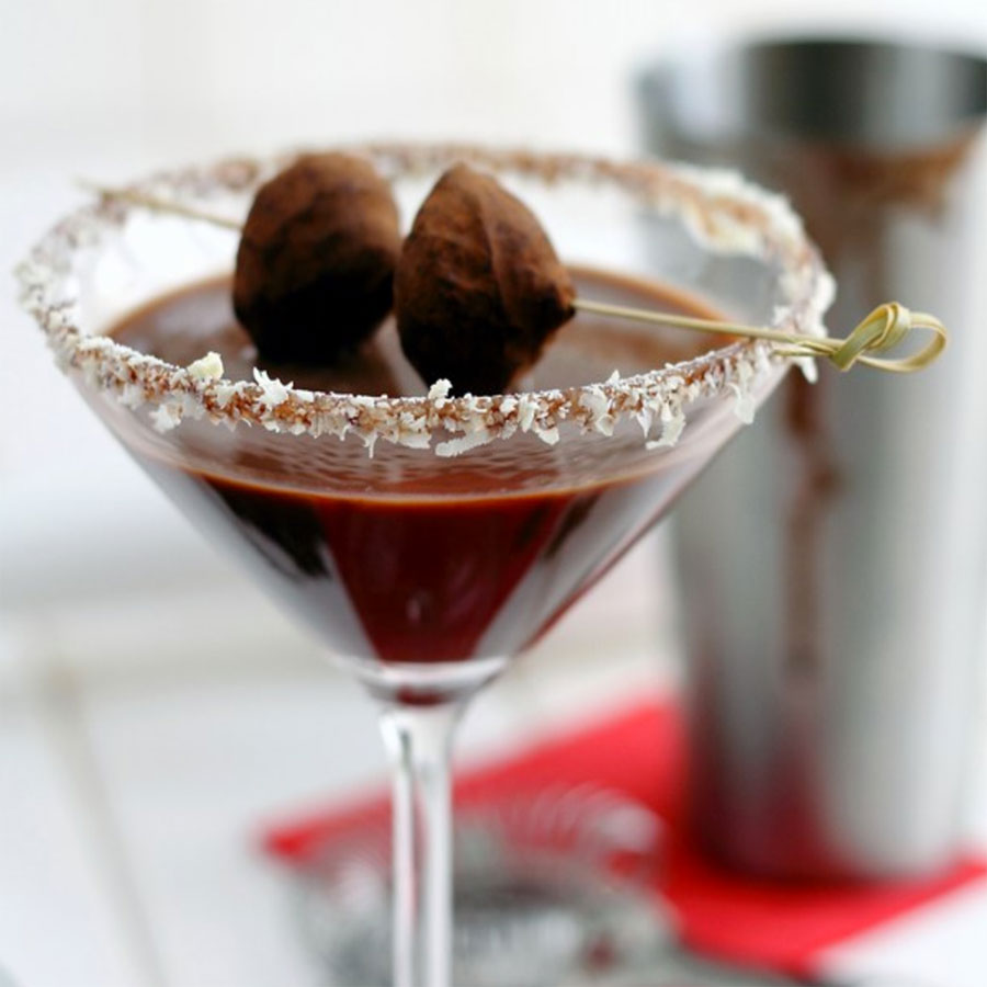 An extra touch of elegance: If you want to wow your guests, melt some of your favorite fine chocolate and dip the rims of your cocktail glasses. Put the glasses in the freezer to set the chocolate. You can double up by adding your favorite sugar to the rim as well.